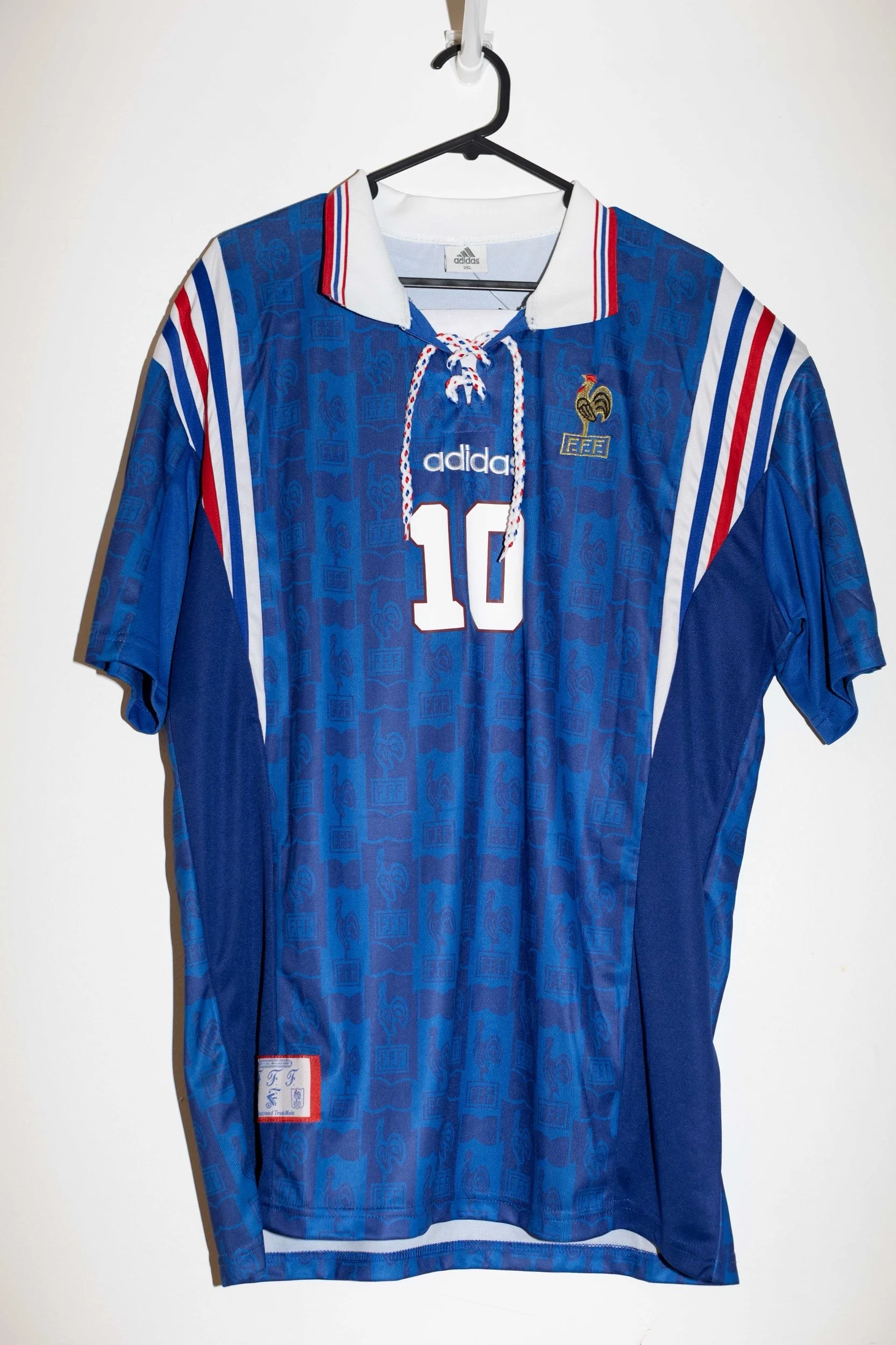 Shop › Zidane “10” France 1996 Euro Home Retro Jersey Image 1 of 2 Image 2 of 2 Zidane “10” France 1996 Euro Home Retro Jersey $60.00 Size: S M L XL 2XL Quantity: Add To Cart Added!