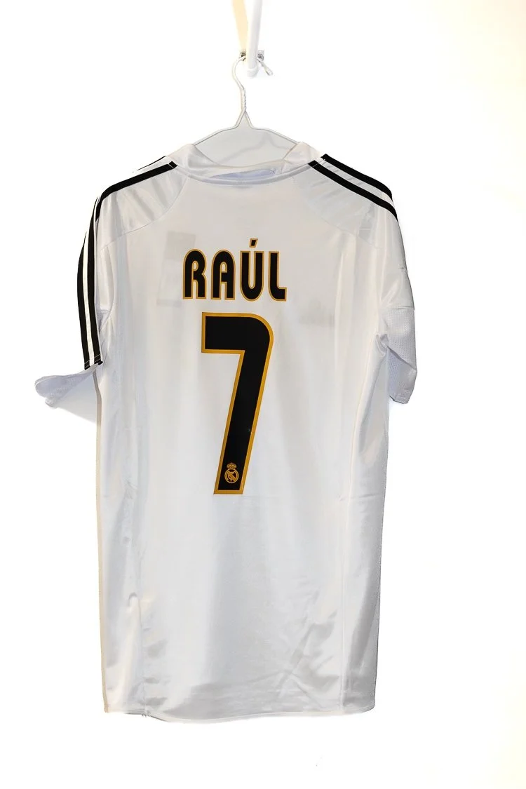 Shop › Raúl ‘7’ Real Madrid 2003/4 Home Jersey 1 / 2 Image 1 of 2 Image 2 of 2 Raúl ‘7’ Real Madrid 2003/4 Home Jersey $60.00 Size: S M L XL 2XL Quantity: Add To Cart Added!